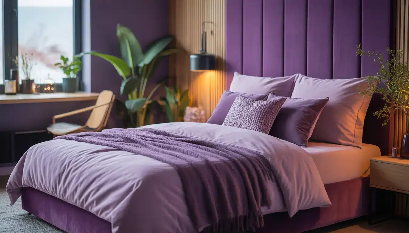 In a bedroom context, purple offers the restorative properties of blue but with a touch of warmth that prevents the room from feeling “cold” or clinical.